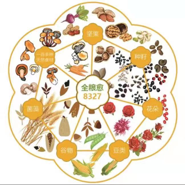 全粮愈(8327)素食全营养餐的食疗组合与配方能恢复人体本源的自愈力与自愈功能,而不是靠外在对抗的西药力量。